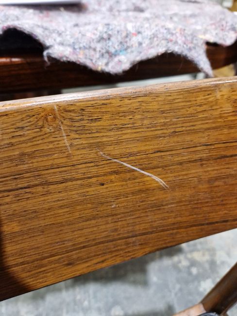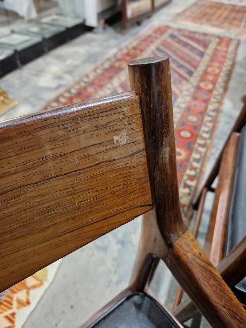 20th century McIntosh rosewood dining room suite, comprising an extending dining table with integral leaf, and a set of eight matching chairs to include two carvers, table bears label A H McIntosh & Co Ltd. Kirkcaldy, Scotland Condition Report Dimensions of dining table (only)Dimensions (approx.): Length 200cm x Width 92cm x Height 73.5cm, extended length: 261.5cmTable with surface scratches, scuffs and knocks.  Split loss of veneer to one corner. Light fading and discolouration. Chairs with surface scratches, scuffs and knocks,fading and discolouration mainly to the crest rails, seats are not removable however there are no tears or rips to the upholstery. Chairs are structurally solid. General wear and tear.