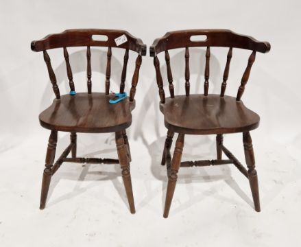 A pair of twentieth century captain's/smoker's chairs with turned spindle backs, measuring approx 77 cm high