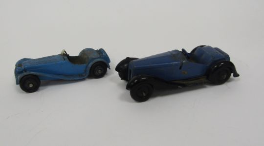 Dinky Toys diecast model vehicles to include No.38f blue Jaguar and 36e British Salmson two-seater sports car, 36g taxi with driver, 40h / 254 Austin yellow "taxi" ,40e /153 Standard Vanguard, 156/140B Rover 75 saloon, 60R Empire flying boat, 62p Armstrong Whitworth Airliner 'Explorer' and a Palitoy Sutherland flying boat (9)