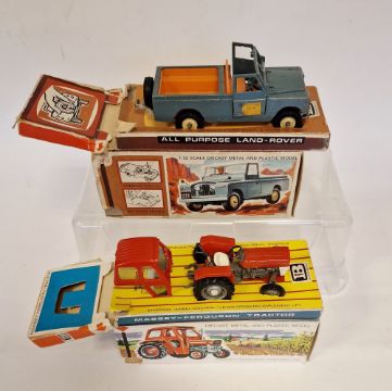 Two boxed Britains farming diecast models to include 135 Massey Ferguson tractor and 9676 Land Rover (2)