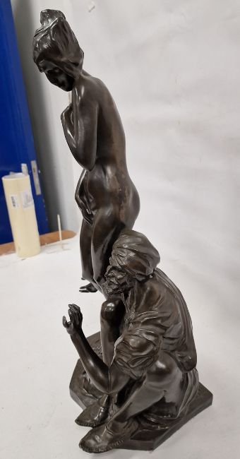 After Bruno Zach (1891-1935) bronzed resin figural group of 'The Slave Trader', signed 'Zach' to canted rectangular base, 64cm high