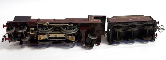 Hornby O gauge E320 4-4-2 locomotive marked "Royal Scot" No.6100 and six wheel tender maroon marked LMS, 20v electric