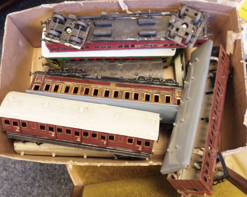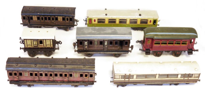 One box of O gauge carriages to include Bing 639 L & HWR guard carriage, Bing II carriage car, A.W. Gamage Ltd carriage, two Märklin carriages etc