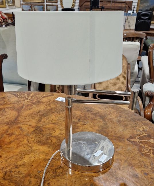 Contemporary Ralph Lauren chrome swing arm-style table lamp, model no. 164081, with original shade, 35cm high excluding fitting