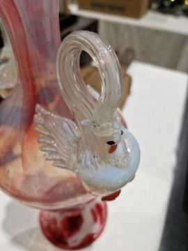 Swan vases in good overall condition, some light surface marks, accretions. No obvious signs of damage, cracks or chips. General wear and tear.