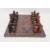 Early to mid 20th century chess set by K & C (London) in labelled pine box and a 20th century African chess set, carved with tribal figures, in ebony and possibly olive wood, with board (the latter complete) (2)
