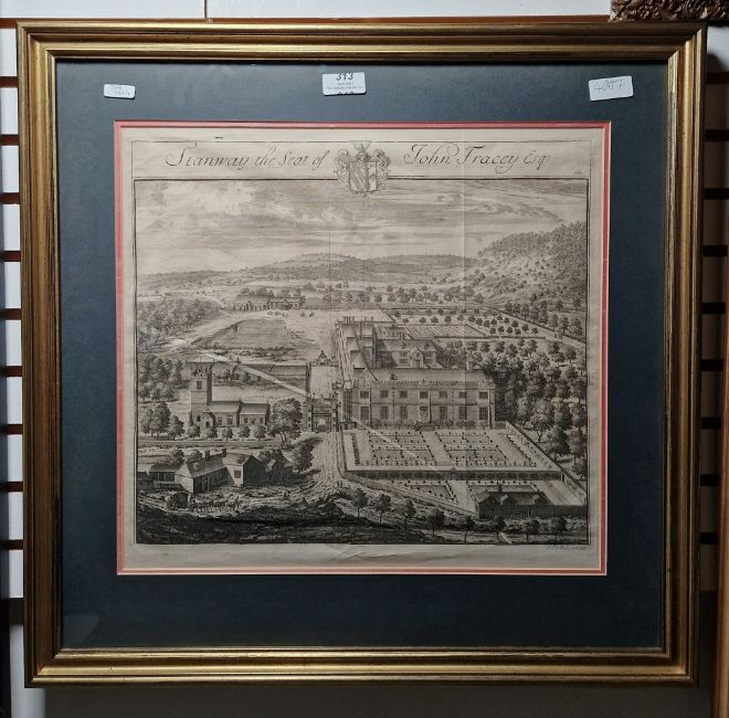Jan Kip (c.1653-1722) Engraving "Stanway the Seat of John Tracey Esq.", framed and glazed, 37cm x 40cm