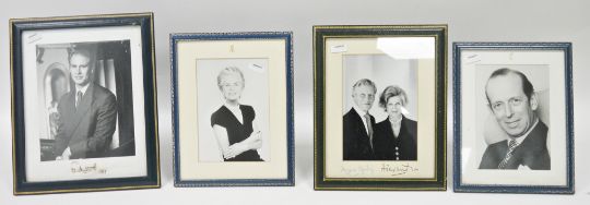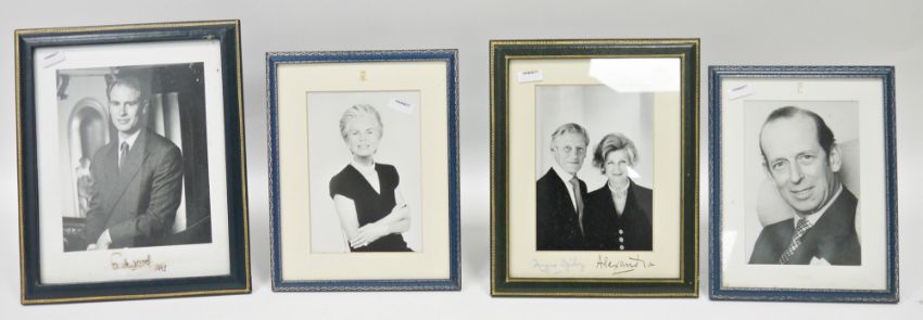 Group of autographed royal portraits including Prince Edward dated 1993, Princess Alexandra of Kent and Sir Angus Ogilvy and others, each in tooled leather glazed frame (4)