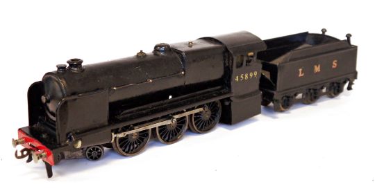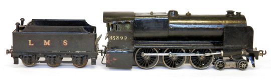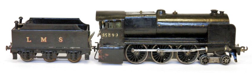 Possibly Bassett and Lowke live steam 4-6-0 gauge No.45899 and six wheel LMS tender with black livery (appears repainted)