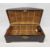 Oriental dome-topped casket with intricate brass clasp and two drop handles, the top decorated with figures painting, the interior lined with oriental script, 65cm x 33cm x 31cm