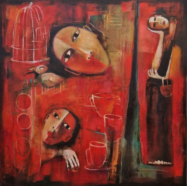 'Dance of the Elements', indistinctly signed top left, 140cm x 140 cm