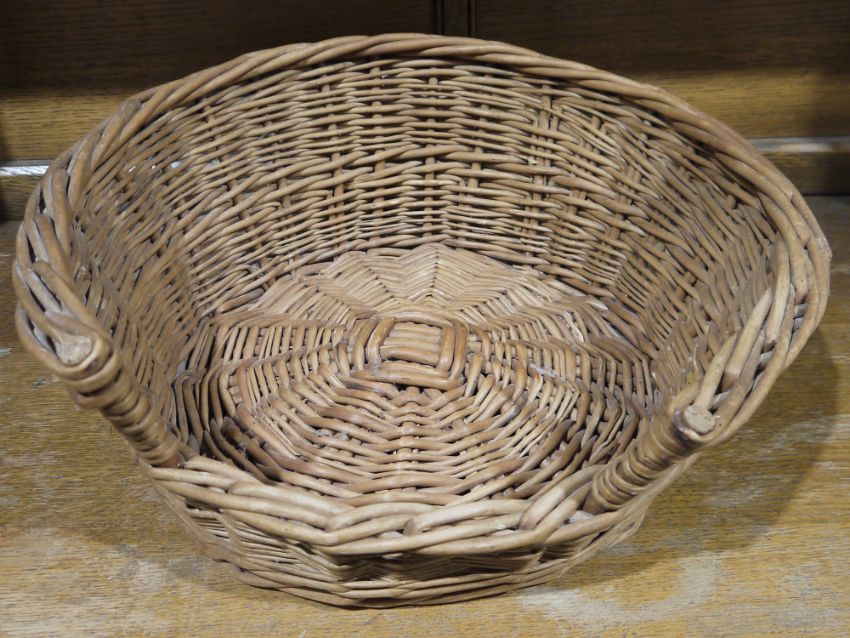 Small cat/dog wicker basket, a clear glass oil lamp and various chinaware (1 box)