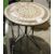Circular garden table with mosaic inlaid top, on cast iron tripod feet and two matching folding chairs (3)