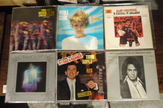 Large collection of approximately 100 interesting popular music vinyl LPs from the 60s, 70's and later including Rick Wakeman, Bert Weedon, Little Richard, The Faces, Neil Diamond, Sonny and Cher, Jerry Lee Lewis The Searchers, Bill Haley, and many more all in plastic sleeves. Viewing recommended.