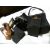 Three black evening bags/purses, framed prints and embroidery and a pair of vintage Middle Eastern slippers (1 box)