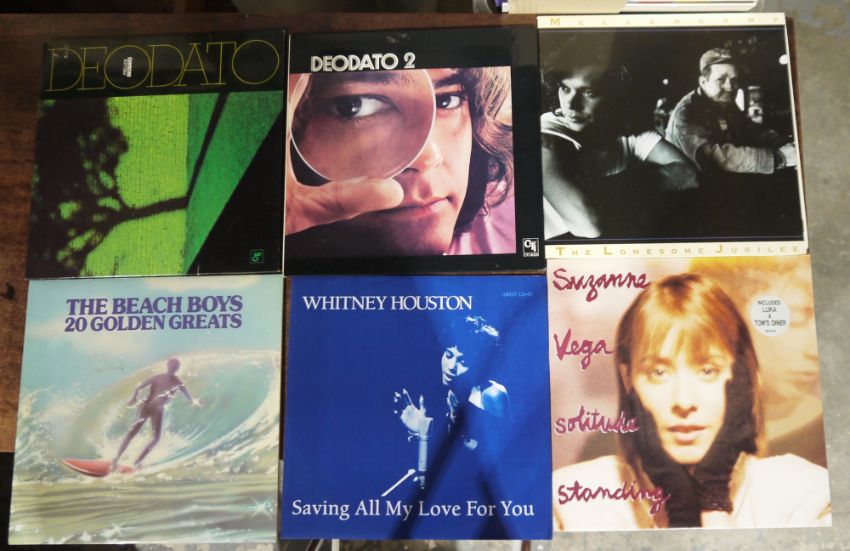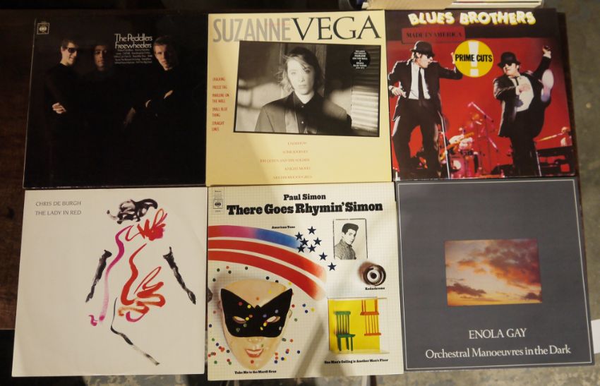 Mixed collection of vinyl LPs including Paul Simon There Goes Rhyming Simon, John Cougar Mellancamp The Lonesome Jubilee, Suzanne Vega Solitude Standing, Deodata 1 and 2,Mike Oldfield Tubular Bells and Platinum, Jean Michel Jarre, and others (22)