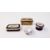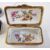 Meissen (Outside Decorated) miniature blue ground teacup, with cancelled blue cross swords marks, painted with a gallant playing a violin in landscape, two English porcelain blue ground small pots and covers painted with bouquets of flowers within gilt scroll cartouches, and a French gilt metal-mounted rectangular snuff box and cover painted with Bacchic figures within lozenge-shaped green ground cartouches (some damages), all 19th century (4)