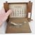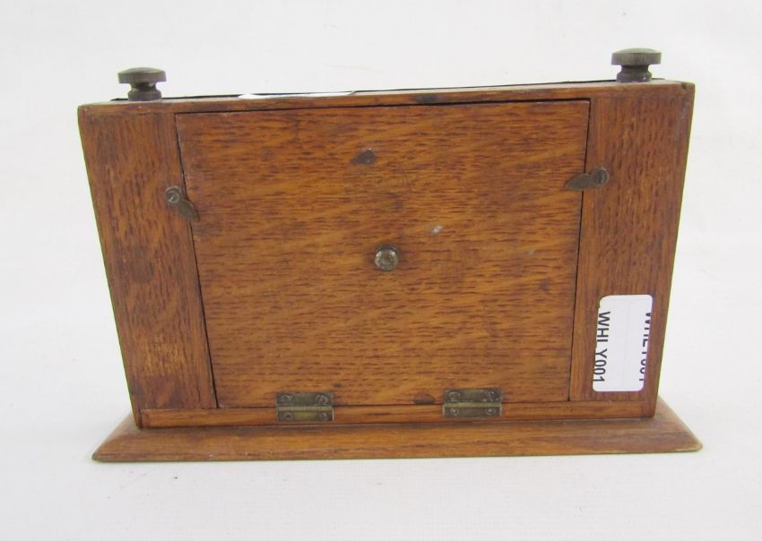Silver mounted stained wood perpetual desk calendar, having raised scroll border, silver front panel, 13.5 cm h x 21 cm w