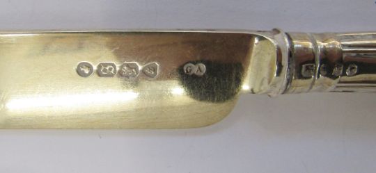 Victorian silver child's christening set viz:- spoon, fork and knife, fiddle and thread pattern, London 1933