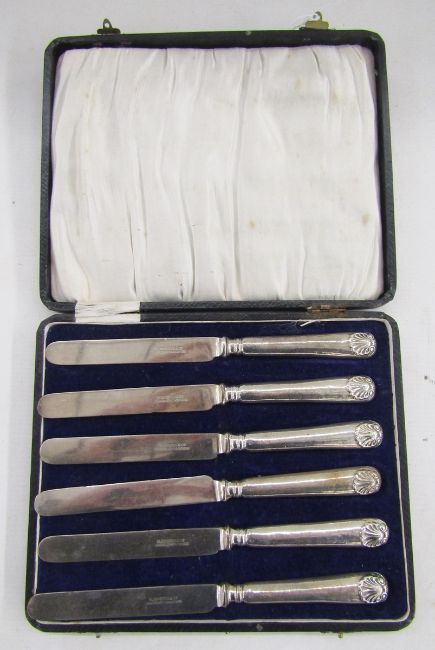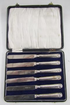 Victorian silver tablespoon, hallmarked London 1846, maker's mark rubbed, together with two further silver tablespoons, gross weight 274g/8.8ozt, together with a set of six silver-handled butter knives by Elkington & Co
