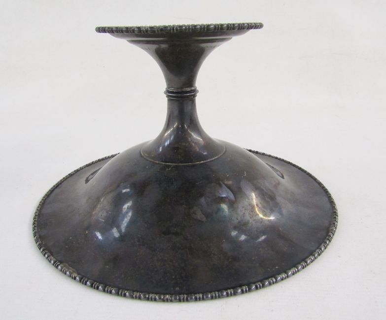 George V silver comport, circular with bead and bar edge, on waisted column on circular foot, 26cm diam x 14.5cm h., Sheffield 1918, 20 ozt approx