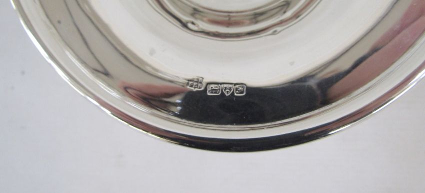 Pair of George V footed two handled sweetmeat tazzas, each with loop handles, on domed and filled feet, hallmarked Chester, 1906, makers marks for Barker Bros., 8.5cm high, gross weight 11.83 ozt