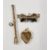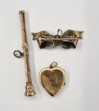 Gold-coloured heart-shaped locket, a silver and green enamel ribbon badge, and a gilt metal propelling pencil (3)