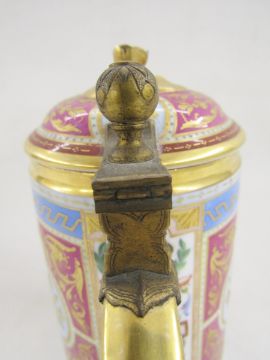 The handle has been cracked, restored and regilt with old regilt riveted repairs in two places, small chips (partially regilt) to the flower finial, minor wear to gilding on handle but remains remain in good order.