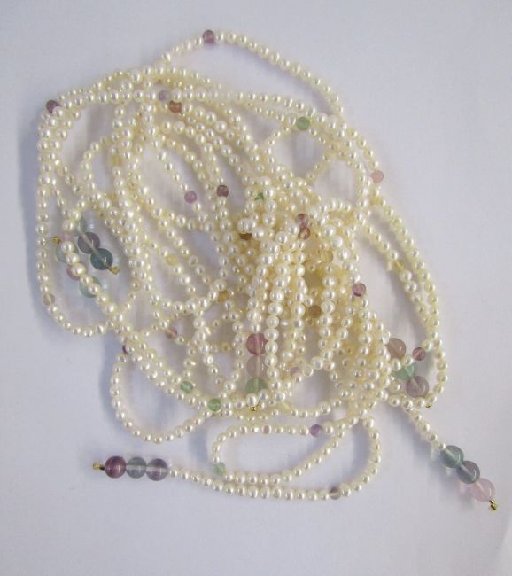 Two strings of South Sea cultured pearls, two long strings of cultured pearls, a string of pale pink and grey pearls, three strings of smaller cultured pearls and beads without clasps and a pair of 9ct gold, pearl and white stone earrings