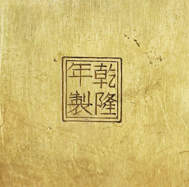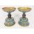 Pair of Chinese cloisonné enamel candlestick stands, Qianlong (1735-1796), each with four character seal mark to base, the waisted bell-shaped base above baluster stem and cup-shaped stand, decorated with lotus and scrolling foliage and flowerhead, on a turquoise ground, 16cm high (2) Condition Report One has signs of old restoration and in-filling around the stem in two place, the other has losses to the cloisonne in a similar area of stem and to the underside of the cup-shaped top, with some cracking, re-gilding and old in-filling. It is possible that they have both been repaired through the stem. Both examples have some cracking and minor losses to enamel at footrim, both have some typical pitting and surface wear overall, both have some rubbing to gilt bronze tops and bases and one base is slightly misshapen. Please see additional images.