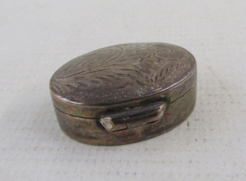 Three silver sugar tongs, comprising: a George III example of plain form, hallmarked London, 1782, makers marks RB, another London, 1926, makers marks RS&S, possibly for Robert Stebbings & Sons London, the third with feathered edge and tips, hallmarked with the lion passant and makers marks P.B, and a small oval pill box engraved with foliate ornament, hallmarked London, 1995, gross weight 2.76ozt (4)