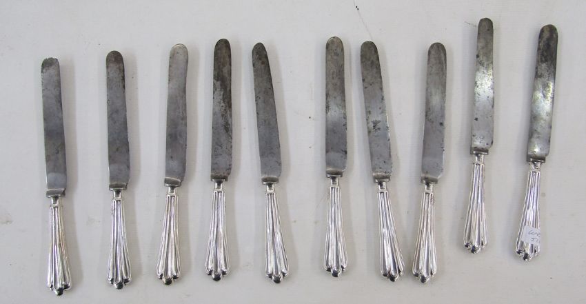 Set of ten 19th century silver plated knives by Elkington & Co, rd no 324624, the blades stamped Elkington, each measuring approximately 16.5cm long