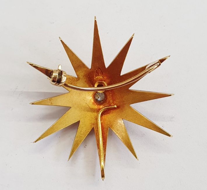 Cultured pearl and diamond set star, 12-point, set graduated pearls centred by single diamond, approx 2.5ct, 4cm diameter