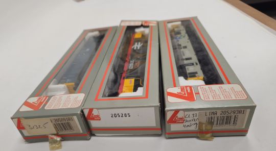 Three boxed Lima Models 00 gauge model railway diesel trainset locomotive engines to include No.205293A1 Stockton Haulage 37511, No.2025285 British Steel Teesside Raifreight 37502 and No.205091A1 31325 loco (3)