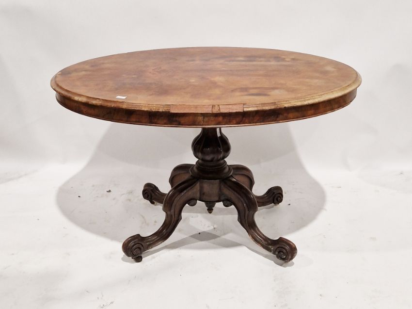 Late 19th century walnut loo table of oval form, raised on four cabriole legs connected to a central pedestal, 71cm high x 120cm wide x 88cm deep