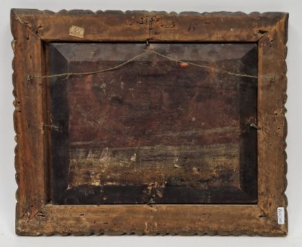 Late 18th/early 19th century Italian school Oil on panel Coastal landscape with figure on horseback in conversation with another in foreground, dwelling and buildings in distance, unsigned, framed, 22cm x  29.5cm
