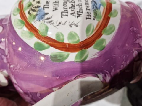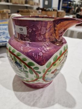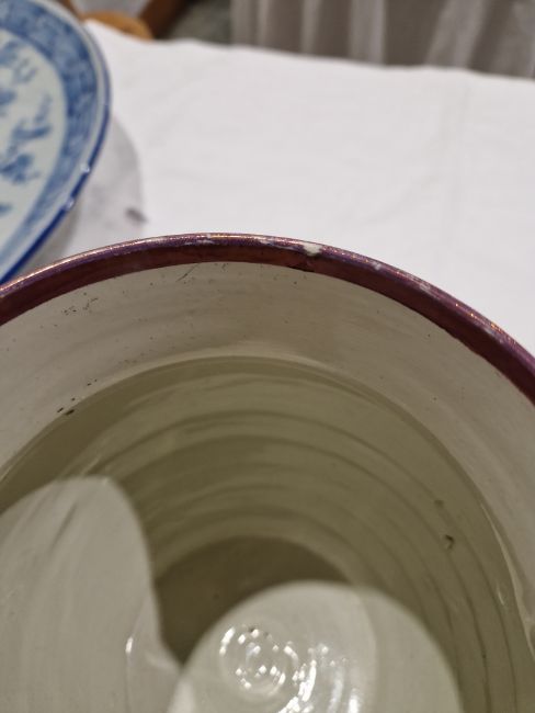Light surface marks, accretions, wear to lustre, mainly to rim and spout. No obvious signs of damage or restoration. General wear and tear.