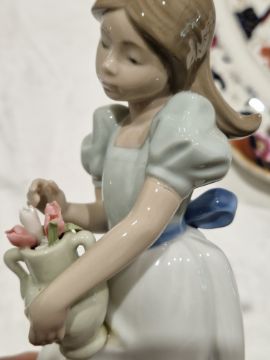 One Nao figure with damage and repair to one arm and loss to part of the bow. Others in good condition. General wear and tear.