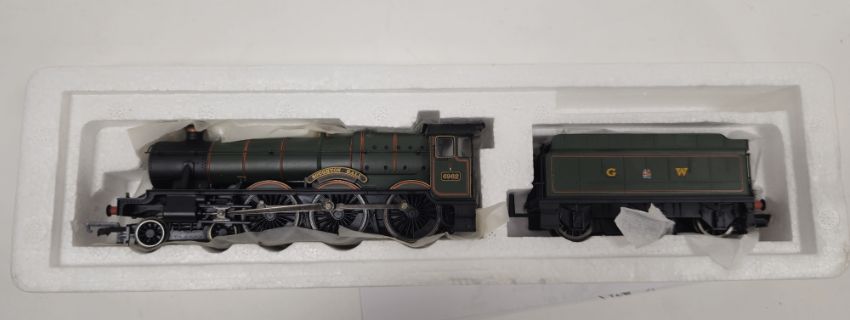 Two Bachmann Branch-line 00 gauge boxed locomotives and tenders to include 31-776 Modified Hall 7915 "Mere Hall" BR lined green l/crest and 31-777 Modified Hall 6962 "Soughton Hall" GW lined green (2)