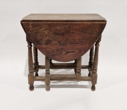 Late 19th/early 20th century oak gateleg dining table, 73cm high x 77cm wide x 41cm deep when folded