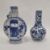 Two Chinese porcelain blue and white Qing Dynasty vases, the first of moonflask form with pierced beast terminals, painted with figures of musicians within recessed central panels, the shoulders with flowerheads, 22cm high and a baluster vase painted with immortals in discussion within lappet-shape cartouches, the ground painted with birds and chrysanthemum, the underside with four-character mark, 20.5cm high (some losses to the terminals of the moonflask) (2)