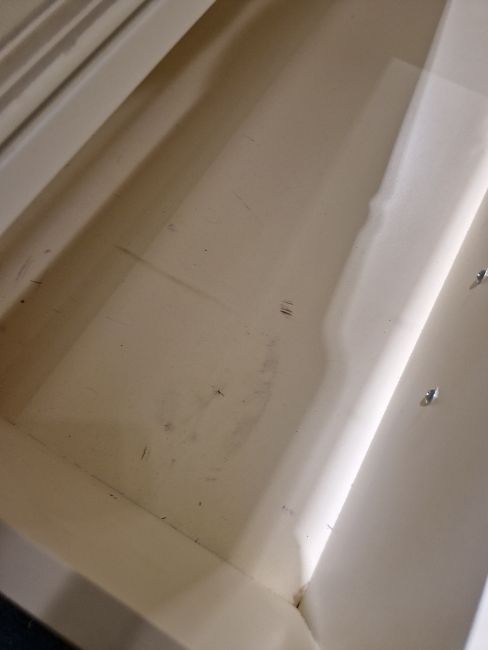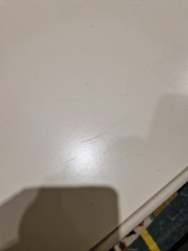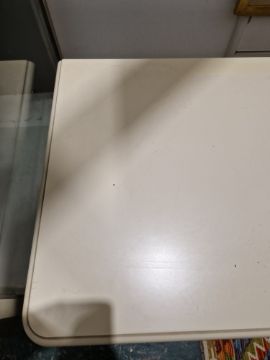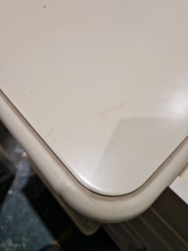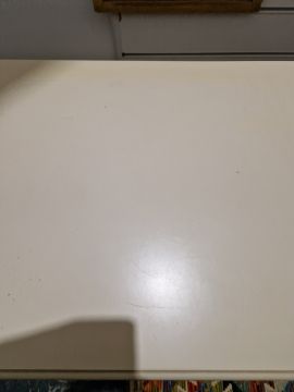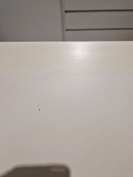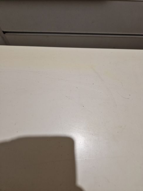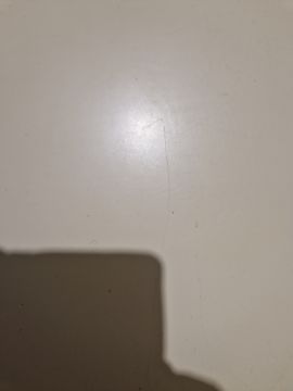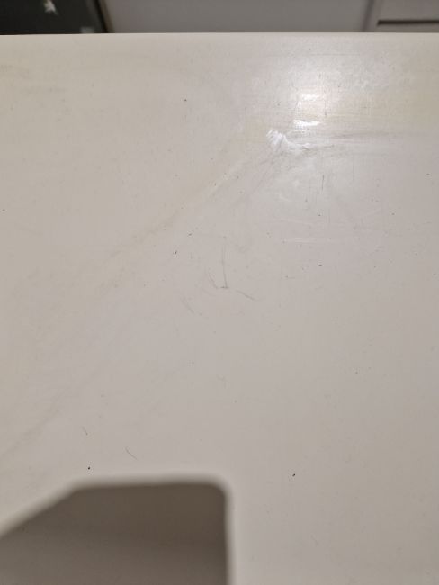 Light surface scratches, some yellowing towards the back of the top. General wear and tear.