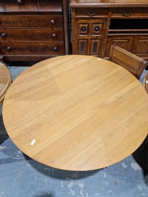 Light surface scratches, scuffs and knocks. Top is solid oak. General wear and tear. The top could be detached and unscrewed if needed for transport.