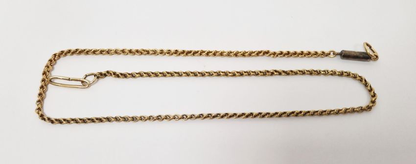Gold-coloured metal length of chain with metal clasp, 6.3g total approx.