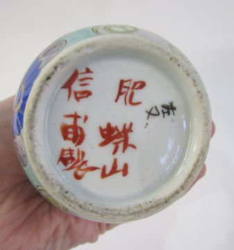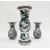 A Chinese famille verte gu-shaped vase and a pair of Japanese porcelain vases, the first probably 19th century, painted with figures within landscapes, the mid bulbous section with quatrefoil cartouches, reserved with lozenge shaped panels (extensively cracked and repaired), the pair of Japanese turquoise ground vases with flared necks and globular bodies, painted with figures of ladies and gentlemen within lobed rectangular cartouches, the ground reserved with flowerheads and foliage, six character iron red marks to bases, circa 1900 (3)