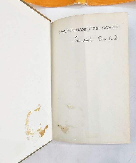 Beresford, Elisabeth  "The Wombles", illustrated by Margaret Gordon, Ernest Benn Limited 1968, signed by the author on tp and also on ffep, Ravensbank First School stamp on ffep and some signs of label being removed on inside front board, green/yellow mottled cloth, dust wrapper not price clipped, slight chips to the dust wrapper, binding tight, overall good