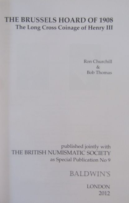 Baldwins book written by Ron Churchill and Bob Thomas on the Brussels Hoard of 1908 reflecting on the long cross coinage of Henry III