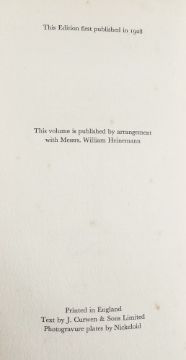 Mann, Thomas  "The Black Swan", Secker & Warburg 1954, inked inscription dated 1954 on ffep, green cloth, slight damp to bottom right hand corner of front board, dust wrapper price clipped and has some chips and fading Sartre, Jean-Paul  "In the Mesh", Andrew Dakers 1948, rust-coloured cloth, some staining to boards, dust wrapper not price clipped Cocteau, Jean "The Miscreant", Peter Owen 1958, portrait drawing frontis, black and white plates, front hinge cracked, pencil marks on ffep, turquoise cloth, some staining, dust wrapper not price clipped, chips  West, Nathanael  "The Day of the Locust", The Grey Walls Press 1951, inked name on ffep, dark blue cloth, dust wrapper, stained  Behan, Brendan "Hold Your Hour and Have Another", illustrations by Beatrice Behan, Hutchinson 1963, illustrations throughout, mottled green and yellow cloth with yellow dust wrapper, some staining and chips Clarke, Harry (ills)  "Selected Poems of Algernon Charles Swinburn", John Lane The Bodley Head 1928, frontis with tissue guard, black and white plates with tissue guards, decorated ep, booksellers label 'Myers & Co, New Bond Street, London, W1', purple cloth, gilt titles, backstrip faded, some chips, corners bumped  Ali, Monica "Brick Lane", Doubleday 2003, red ep, black cloth, dust wrapper not price clipped (7)