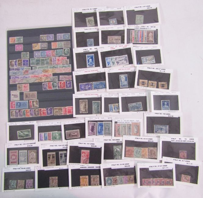 Italian stamps: Various definitives, commemoratives, air, parcel and postage due of 1880s to 1960s, both mint & used, on sheets & various stock-cards with scarcer issues seen. SG cat value £2000+.