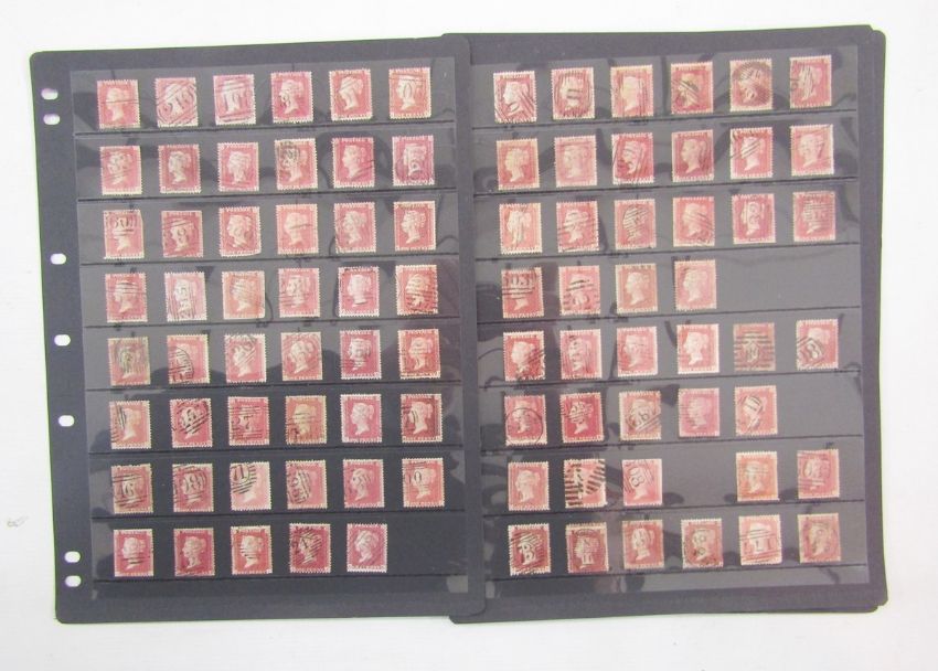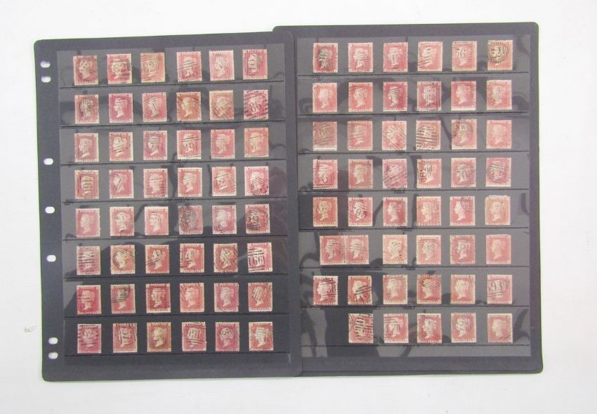 GB stamps: QV used 1d Red 1856-8 plate positional AA-TL collection on 5 Hagner stock-sheets, almost complete (12 missing out of 240 required).
